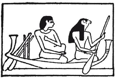 Рис 7. Бог-солнце гребет, перевозя душу умершего по небу