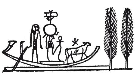 Символ двойного быка имеет ценность khens (например, «Pyr.», 416, как созвездие, связанное с охотой) и подобным образом, похоже, также появляется среди созвездий на магических жезлах. О другом символе см.: Dua, гл. 7, коммент. 21.