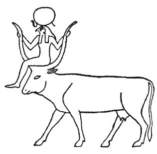 Самые древние тексты говорят чаще о диком небесном быке, несмотря на египетский род слова pet. И это также, похоже, объясняет, почему так много богов (особенно божеств небесного характера) появляется в форме черного быка, поскольку черный и темно-синий воспринимались как один и тот же цвет. В «Pyr.», 470, например, упоминается небесный бык с четырьмя рогами, по одному для каждой точки опоры. Соответственно, в более ранней традиции Осирис часто имеет облик быка. Таким образом, все представление, похоже, заимствовали из стран дальнего севера, где мычание неба, то есть гром, было более обычным явлением, чем в Египте.