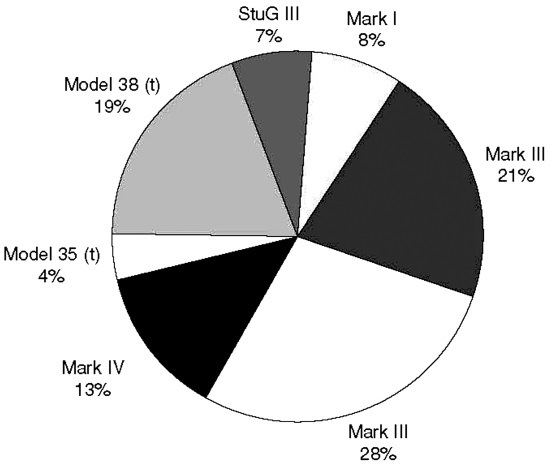3-я: T-II – 58, T-III (37) – 29, T-III (50) – 81, T-IV – 32, Ком. – 15;