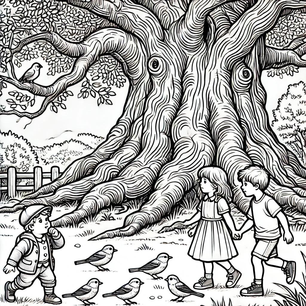 Однажды солнечным утром друзья отправились гулять к старому дубу. Это было их любимое место. Огромное дерево с мощными корнями казалось, что оно росло здесь вечно.