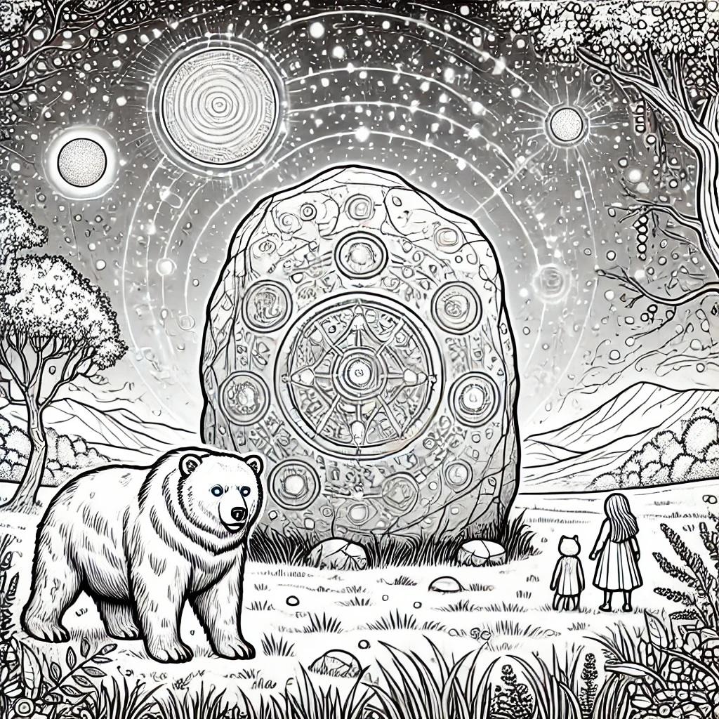 Медведь медленно поднял лапу, и символы на камне начали светиться ярче, переливаясь мягкими цветами.