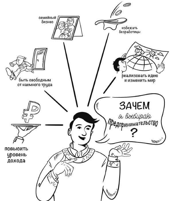 Выбор профессии предпринимателя, как и другие решения человека, может произойти по разным причинам. Один устал от скучной и неинтересной работы, кто-то не смог найти работу, и предпринимательство стало вынужденной мерой. Другой увидел в предпринимательстве источник высокого заработка и существенного повышения качества своей жизни. Третий нашёл интересную идею и решил изменить мир на ее основе. А четвертого вовлек в предпринимательство друг или родственник для продолжения семейного бизнеса.