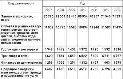 Таблица 1.2. Численность занятых в экономике по видам экономической деятельности, тыс. чел.