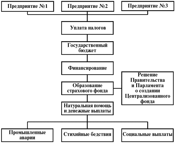 В отличие от данной формы расходы из централизованного (бюджетного) фонда распределяются между всеми плательщиками в этот фонд, независимо от того, пользуются ли эти плательщики услугами страхования или нет.