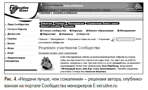 Позже на основе этой рецензии появилась публикация на портале Сообщества менеджеров E-xecutive.ru (рис. 4).