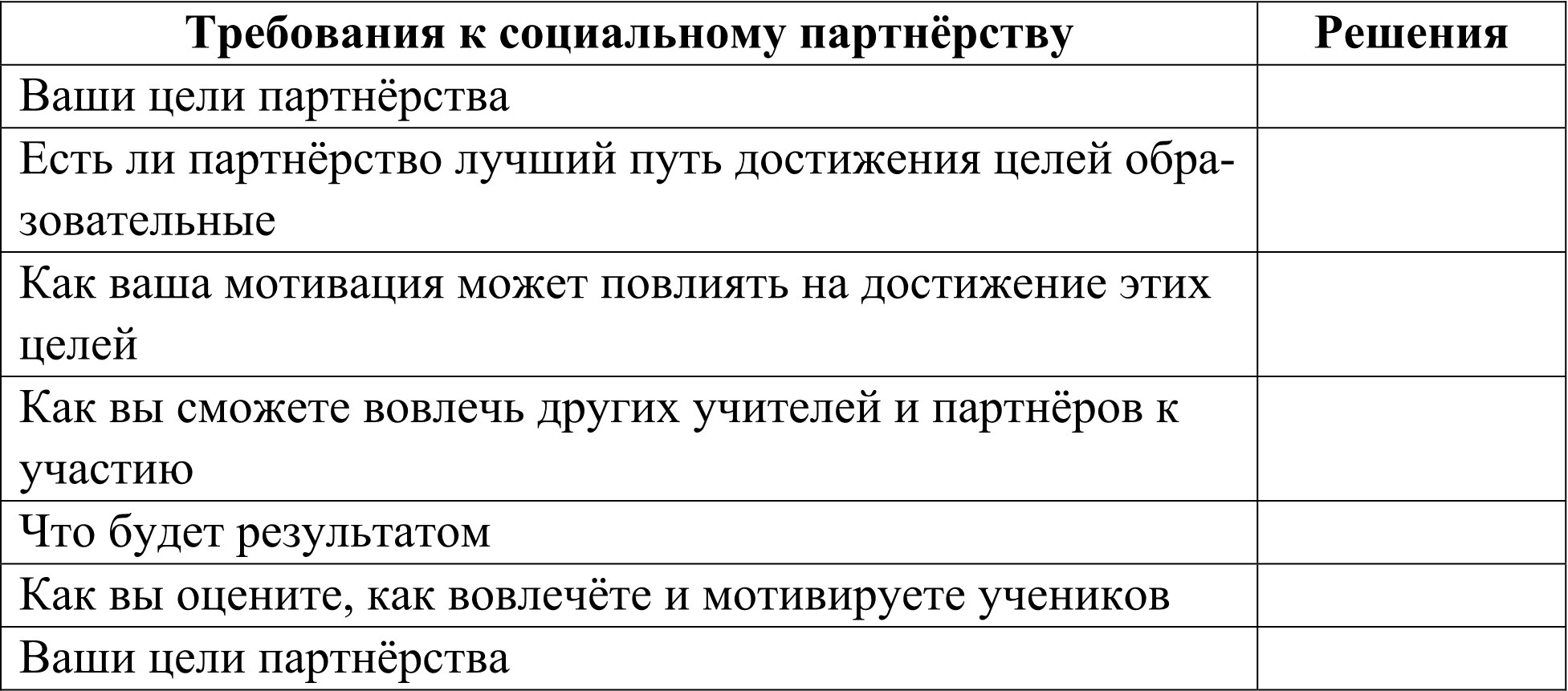 Что может дать социальное партнёрство вашей школе, вам при реализации программы обучения в классе. Понятны ли вам цели партнёрства?