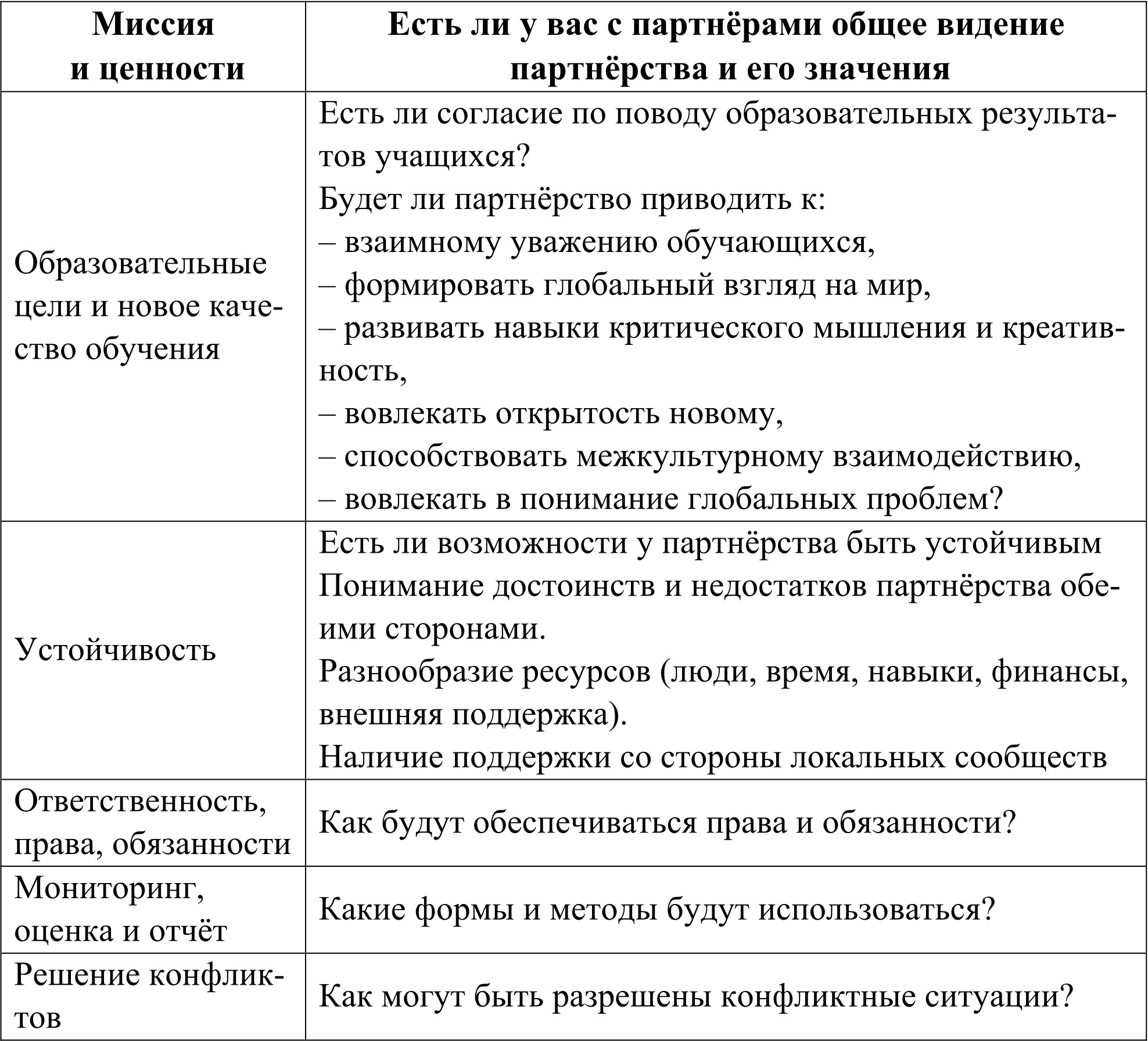 4. Устанавливать вклад партнёров в достижение целей партнёрства.