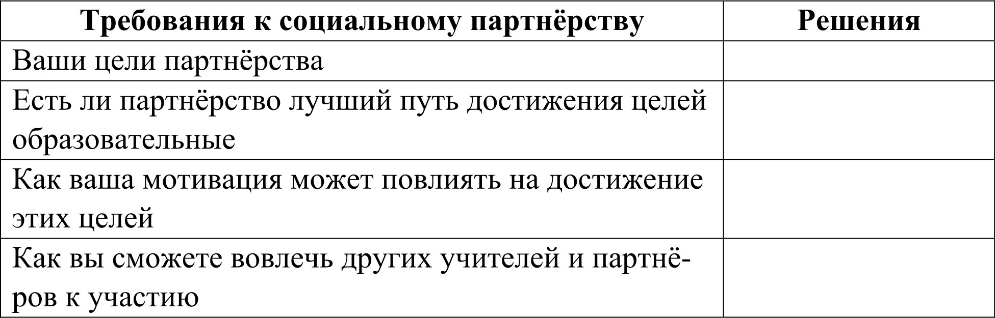 ‒ освоить информацию об основных технологиях социального партнёрства.