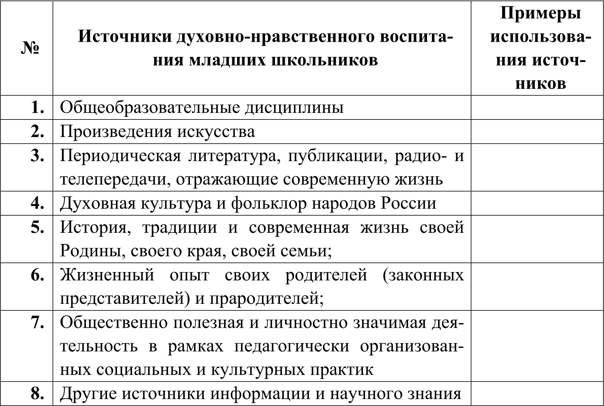 Приведите пример источника духовно-нравственного воспитания младших школьников
