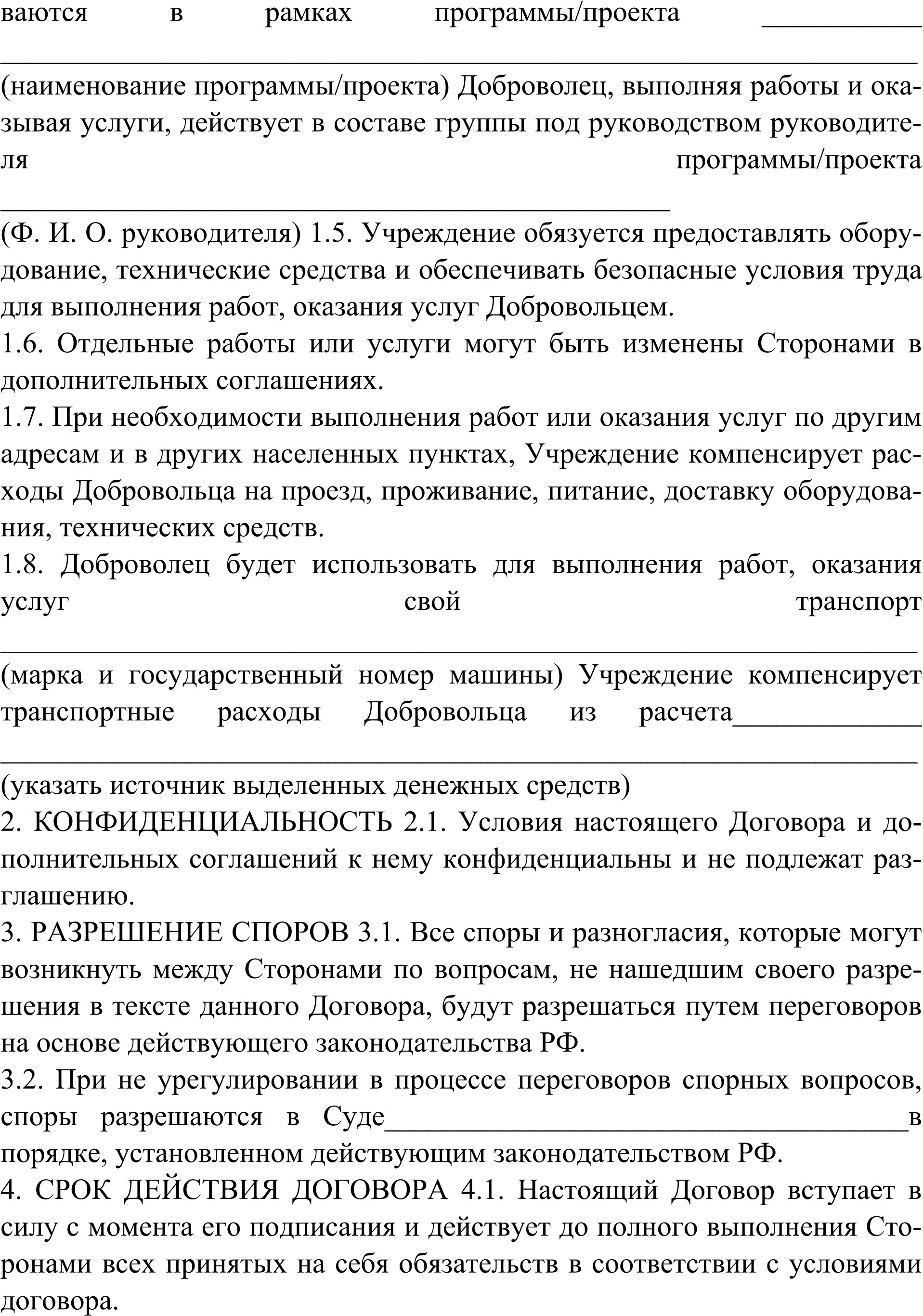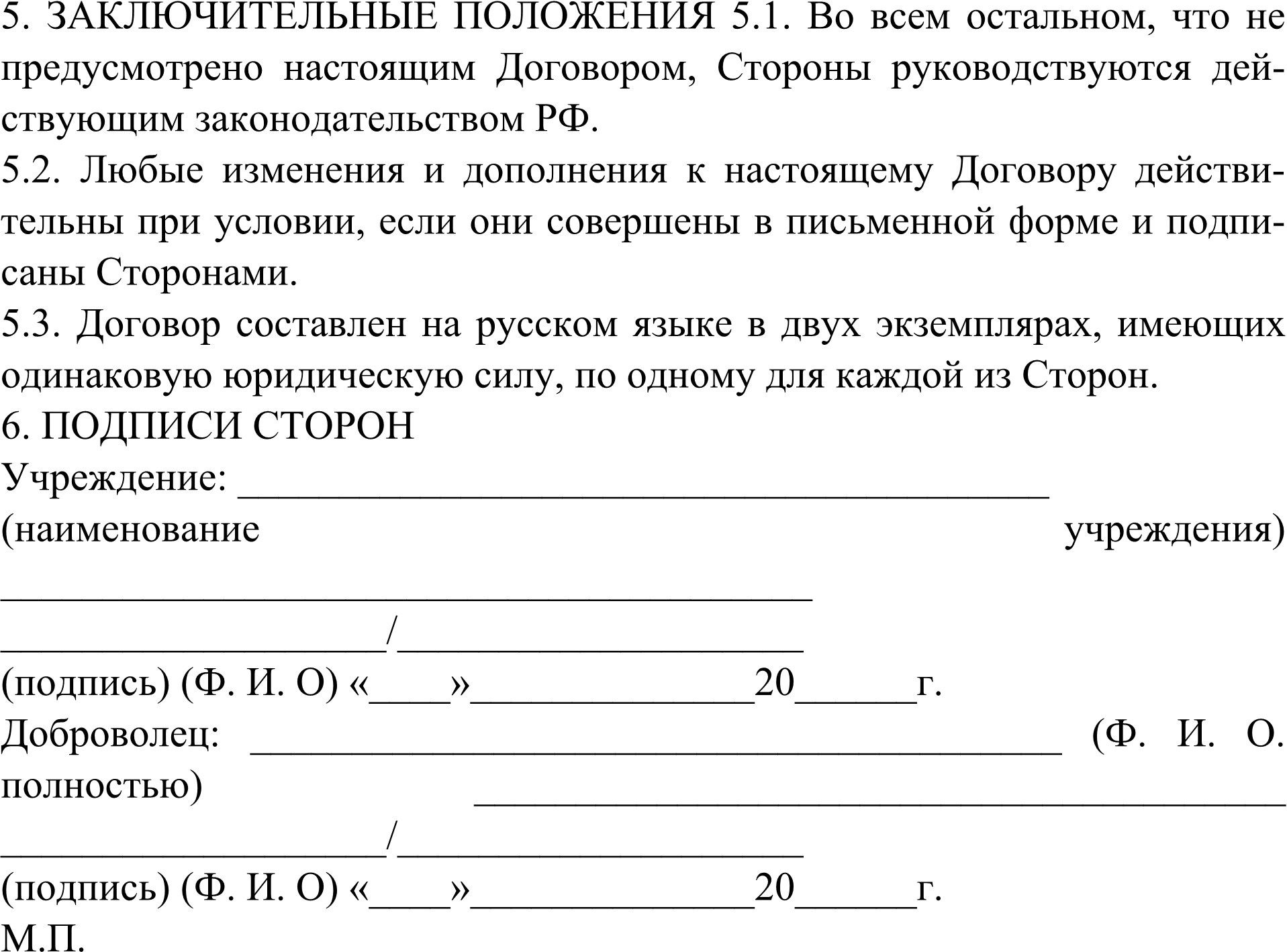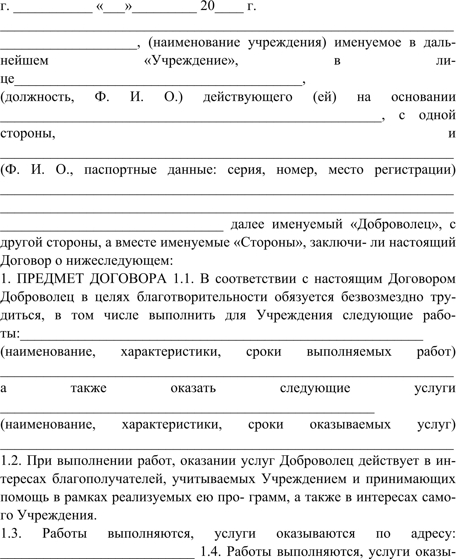 Договор № ____ на безвозмездную благотворительную деятельность волонтёра