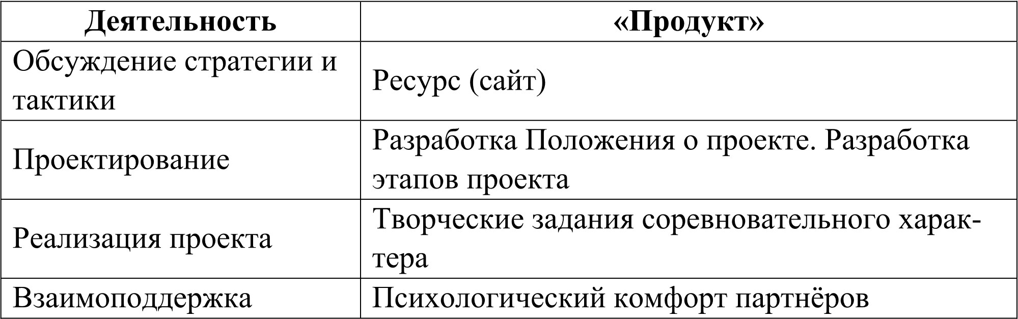 ‒ совместная деятельность (итог – умение партнёров участвовать в совместной деятельности, то есть их определённая компетентность, основанная на доверии),