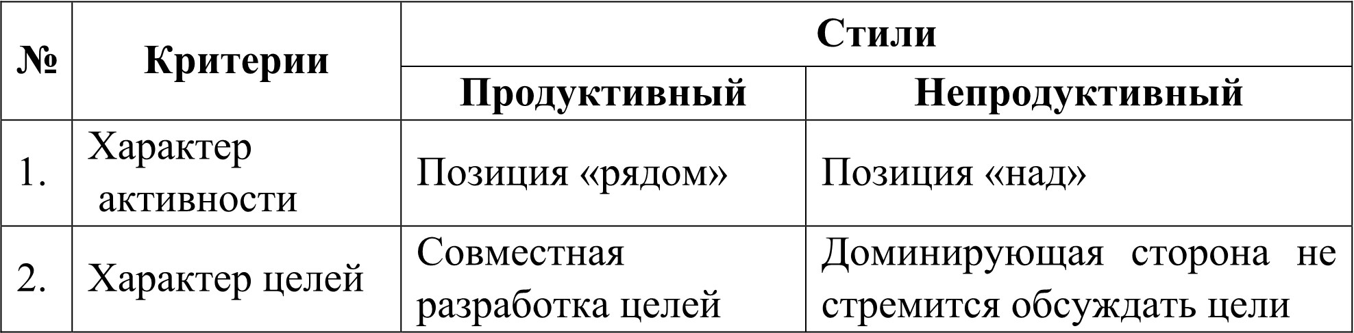 Продуктивный стиль представляет собой плодотворный способ контакта сторон, способствующий установлению и продлению отношений взаимного доверия, раскрытию потенциалов и достижению эффективных результатов в совместной деятельности.
