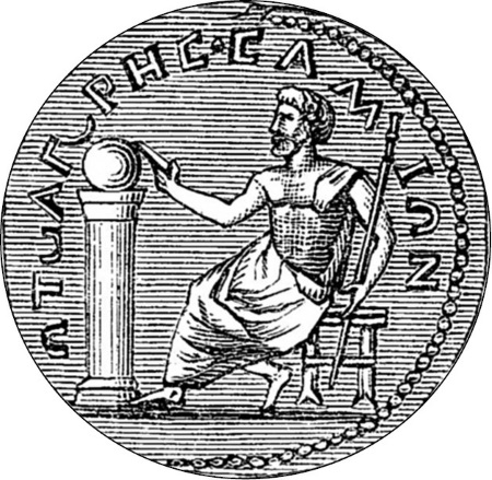 Монета с изображением Пифагора