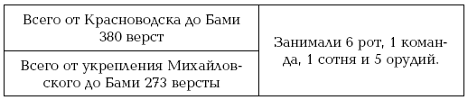 Всего от Чекишляра до Бами 305 верст, занималось 10 ротами, 2 сотнями, 9 орудиями и 2 картечницами.