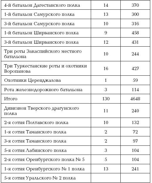 Всего по линии от Бами до Самурского 103 версты занято 6½ ротами, 4 сотнями и 12 орудиями (Прим. авт.).