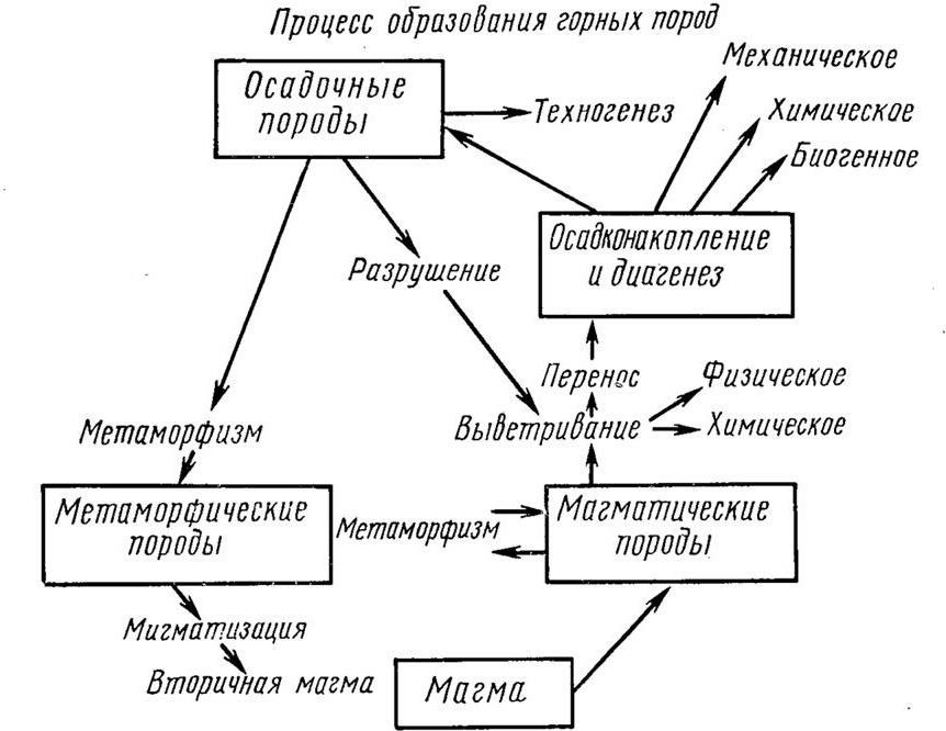 Классификация горных пород. По условиям образования все горные породы подразделяют на три группы: магматические, осадочные и метаморфические.