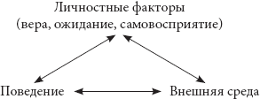 Бандура полагает, что люди не побуждаются к определенным действиям исключительно внутренними силами или внешними стимулами, более того, он возражает и против точки зрения, согласно которой поведение является результатом взаимодействия индивида и конкретной ситуации (B = f (P, E)), поскольку она не отвечает на основной вопрос: каким образом эти два источника влияния взаимодействуют при формировании поведения. Он считает неверной и формулу