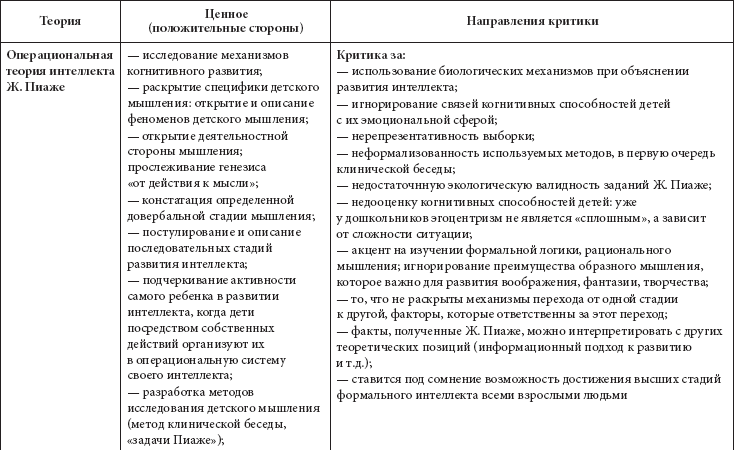 Заключить этот параграф хотелось бы словами У. Крэйн [2002, с. 193]: «Буквально все пытаются противопоставить свои идеи взглядам Пиаже. Это уже само по себе свидетельствует о значимости теории Пиаже. И можно ручаться, что когда все страсти улягутся, теория Пиаже по-прежнему останется в силе. Ибо при всех ее слабостях она охватывает важнейшие аспекты когнитивного развития».