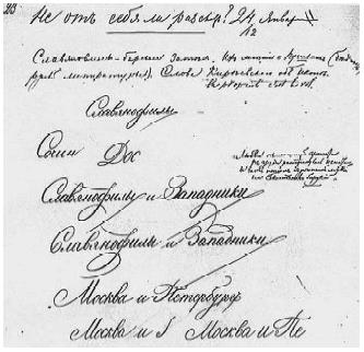 РОСТОВЩИК Неосущ замысел, 1866. (V) Набросок плана сделан в рабочей тетради в начале 1866 г. Намечался, судя по всему, бурный сюжет – с насмешками, оскорблениями, дуэлями и самоубийствами. Герои обозначены как: «Граф (Сол-б)», «Vielgors.» и «Данилов, О П.», над последним сверху приписано – «Черн.». Вероятно, прототипами персонажей должны были стать В. А. Сотогуб, М. Ю. Виельгорский, 77. Г. Чернышевский. В романе «Преступление и наказание», над которым писатель работал как раз в это время, тема ростовщичества играла важную роль, будет затрагиваться она и в романе «Идиот» (1867), замысле под условным названием «Роман о Князе и Ростовщике» (1870), «Подростке» (1875). Но еще большую роль играла тема ростовщичества в жизни самого Достоевского. Взять только небольшой период его жизни из минувшего 1865 г.: 2-го апреля писатель относит к ростовщику Готфридту золотую булавку за 10 рублей серебром и под 5 процентов; 20-го апреля закладывает у того же Готфридта еще одну булавку за ту же цену и под те же проценты; 15-го мая выпрашивает у ростовщицы Эриксан под заклад серебряных ложек 15 рублей – к Готфридгу идти, видимо, уже невмоготу; но через пять дней, 20-го мая, Достоевский все же опять обращается к Готфридту, однако ж – через посредника, свою знакомую П. П. Аникееву, и закладывает на этот раз ватное пальто за десятку… Нет, недаром писатель через полгода намеревался писать роман «Ростовщик» и не случайно в «Преступлении и наказании» образ процентщицы Алены Ивановны получился столь полнокровен и отвратителен.