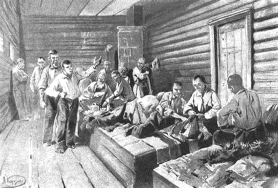 Арестанты на нарах в казарме острога.
