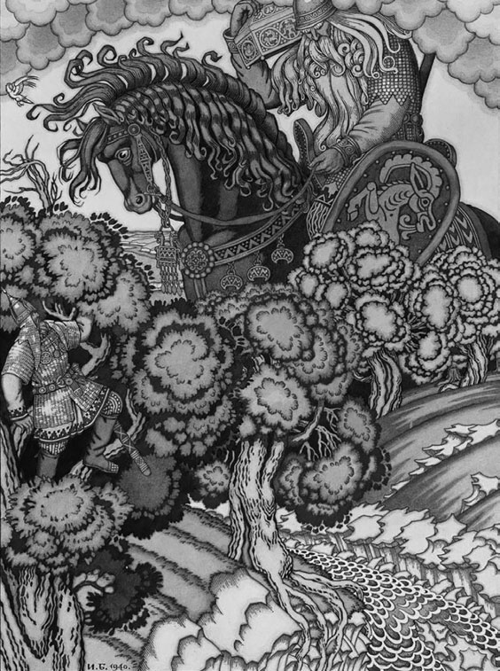 И. Билибин. Илья Муромец и Святогор. 1940 г.