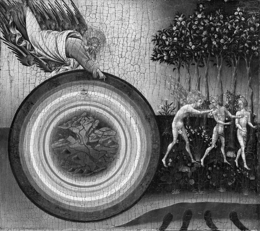 Джованни ди Паоло. Сотворение мира и изгнание из рая. 1445 г. Христианская интерпретация рождения Вселенной