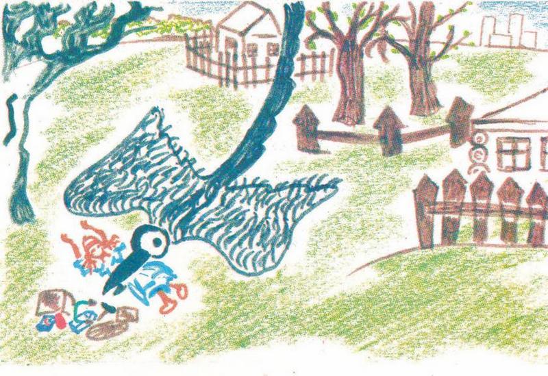 Сороки не поднимаются очень высоко. Летать быстро они тоже не умеют. Поэтому Зюке совсем не было страшно. Путешествие, пожалуй, оказалось бы совсем приятным, если бы не частые остановки на крышах, заборах и мусорных ящиках.
