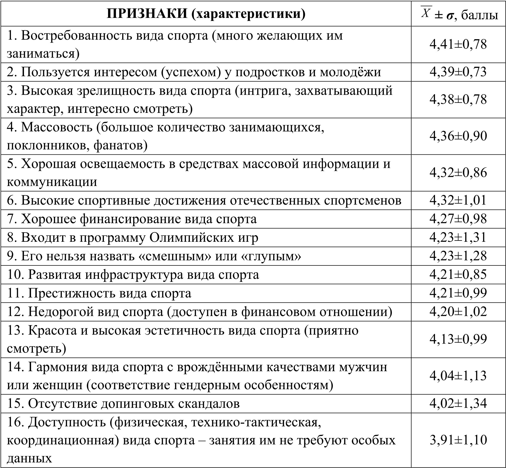 ▪ быть массовым, иметь большое количество занимающихся, поклонников, фанатов (ρ = 0,885; P < 0,01);