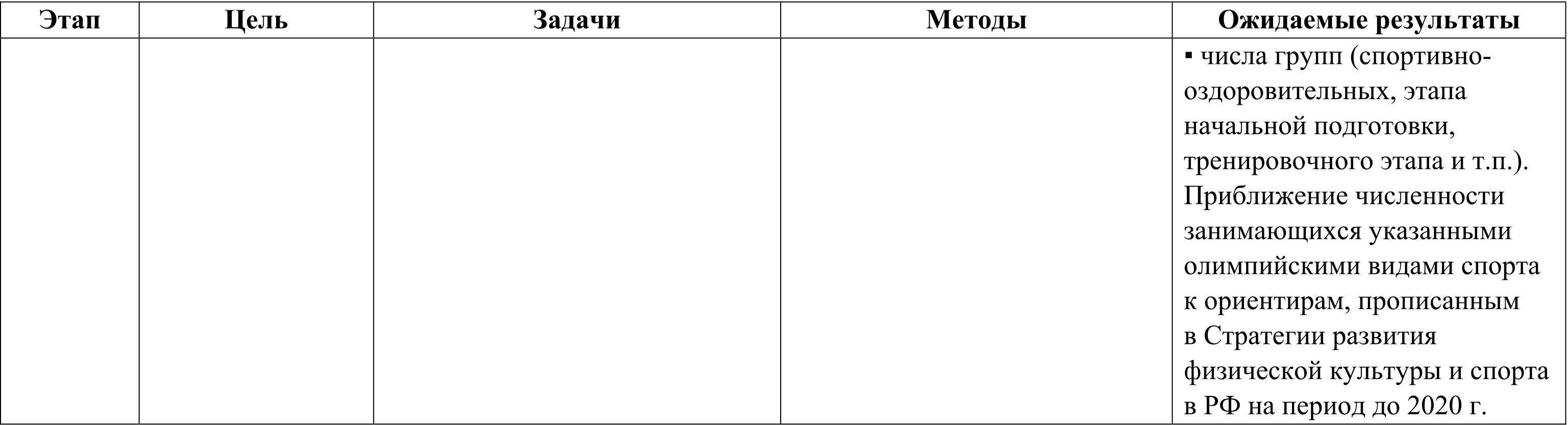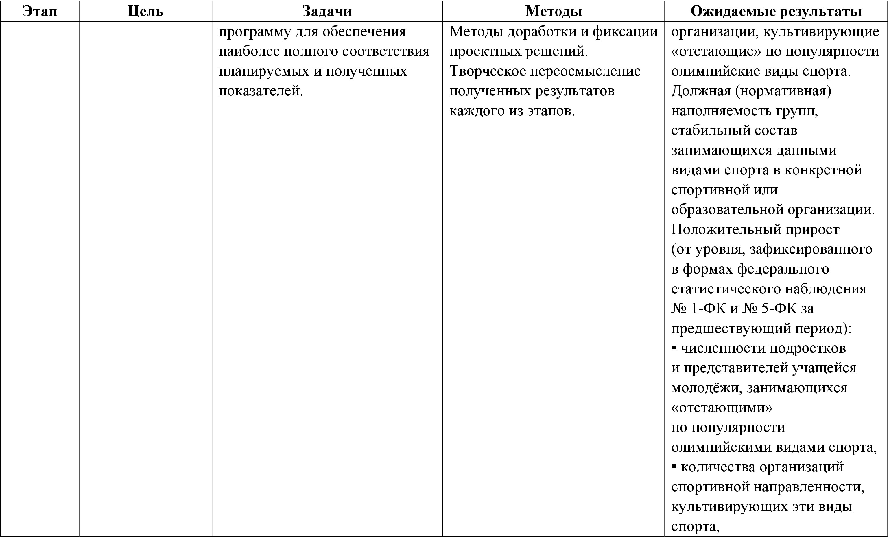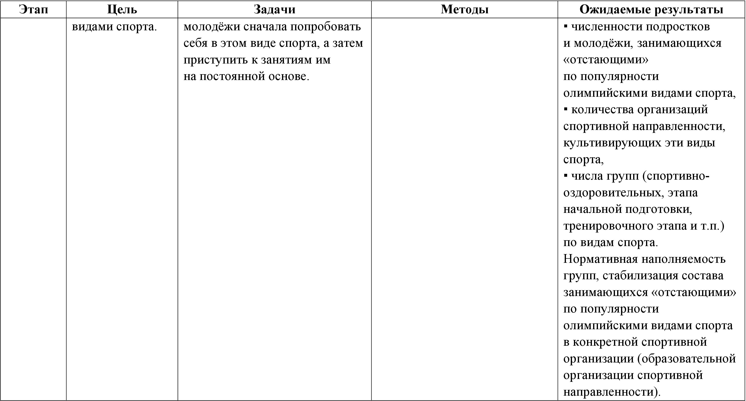 – приближение численности подростков и представителей учащейся молодёжи, занимающихся непопулярными олимпийскими видами спорта, к ориентирам, прописанным в Стратегии развития физической культуры и спорта в РФ на период до 2020 г.