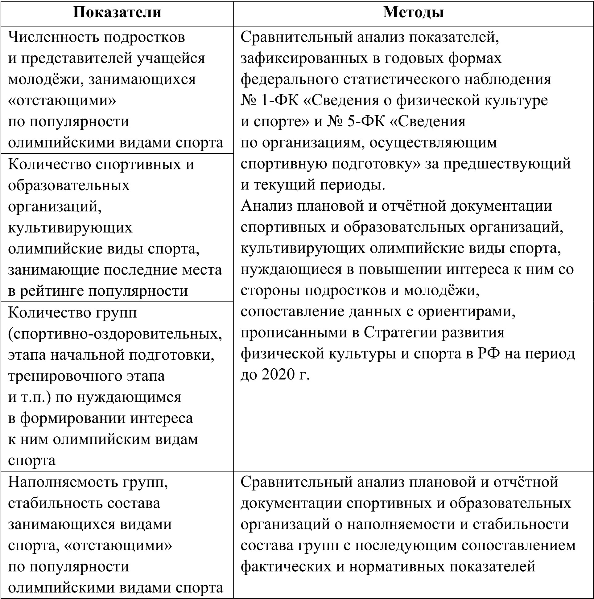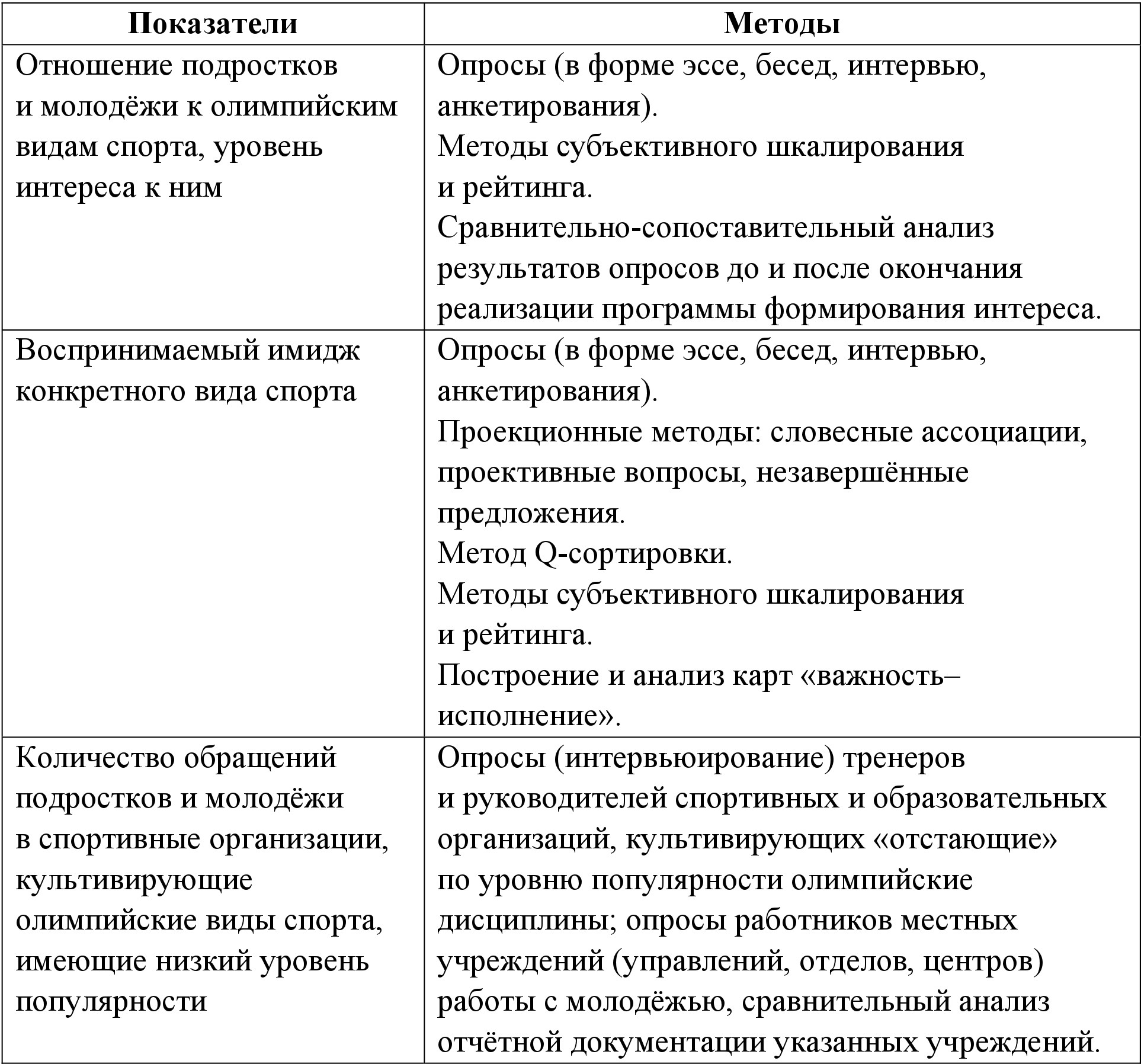 Методы измерения и оценки результатов педагогической деятельности по формированию интереса подростков и учащейся молодёжи к занятиям непопулярными олимпийскими видами спорта