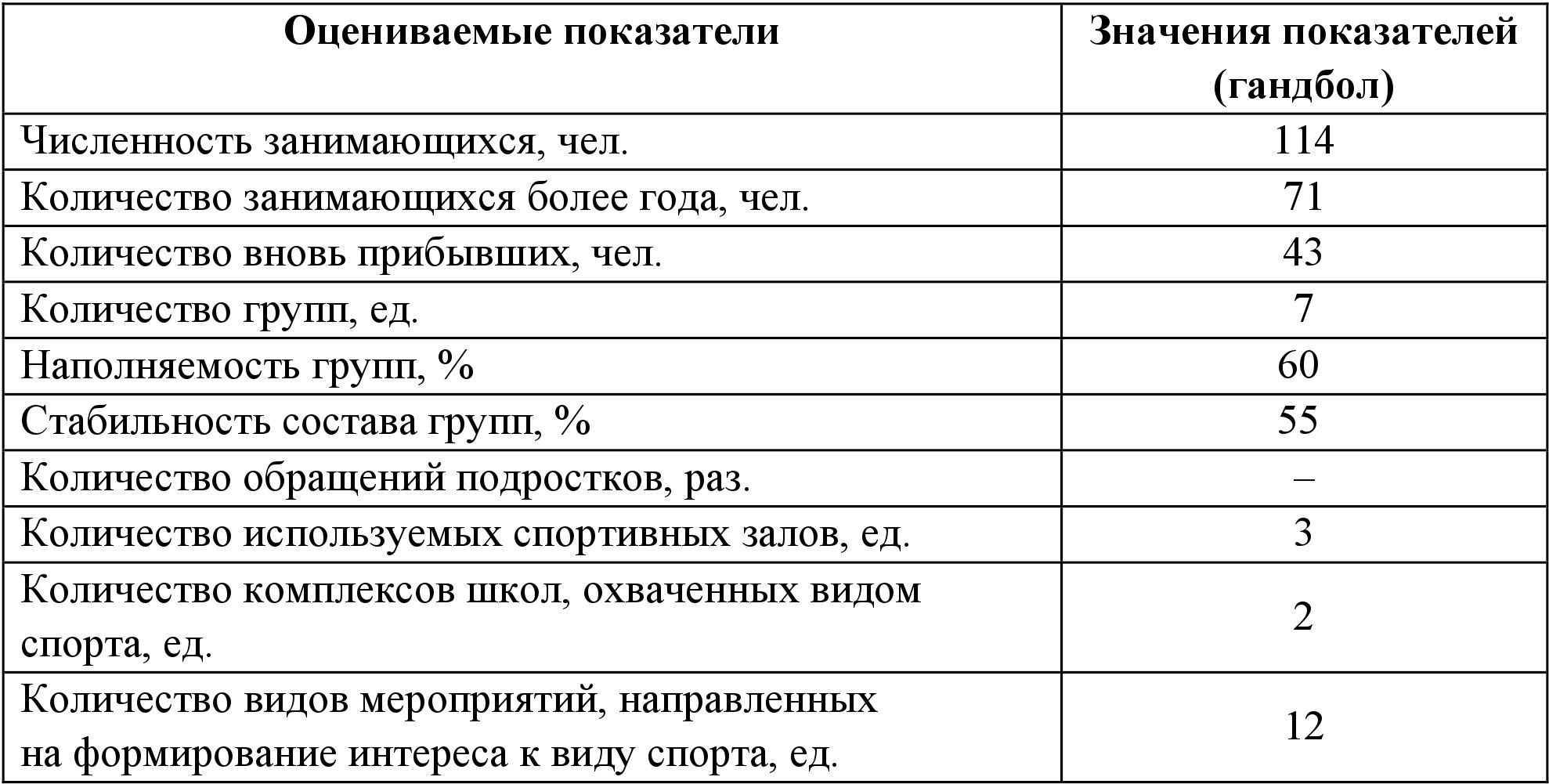 В табл. 3.3 представлены исходные показатели работы ГБОУДО ДТДМ «Неоткрытые острова» г. Москвы в области формирования интереса к виду спорта гандбол.
