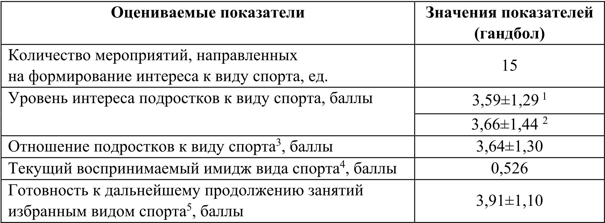 Если на констатирующем этапе эксперимента в отделении гандбола уровень интереса и отношение подростков, обучающихся в окрестных школах, к указанному виду спорта варьировались вокруг ответа «трудно сказать», то к концу реализации программы по формированию интереса эти показатели значительно улучшились до стабильных оценок «нравится», «интересно», «при возможности пошёл бы заниматься». Что касается внешнего имиджа вида спорта гандбол (в восприятии подростков, обучающихся в близлежащих к Дворцу школах), то он вырос с отметки «удовлетворительный» до оценки «высокий уровень позитивности».