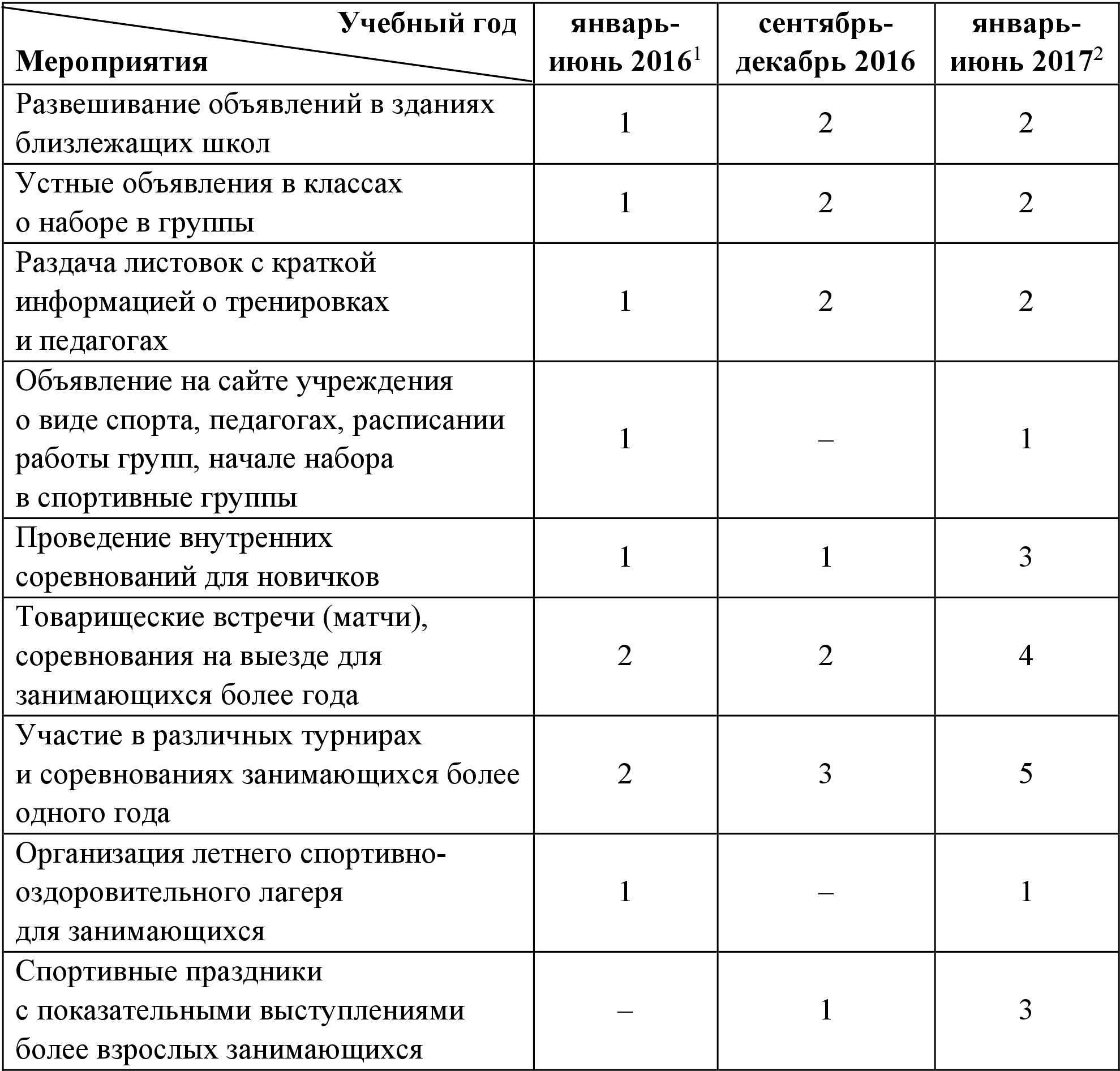 В процессе эксперимента помимо агитационных и пропагандистских мероприятий были реализованы нововведения и внесены существенные изменения в организацию и содержание тренировочного процесса (см. раздел 3.1).