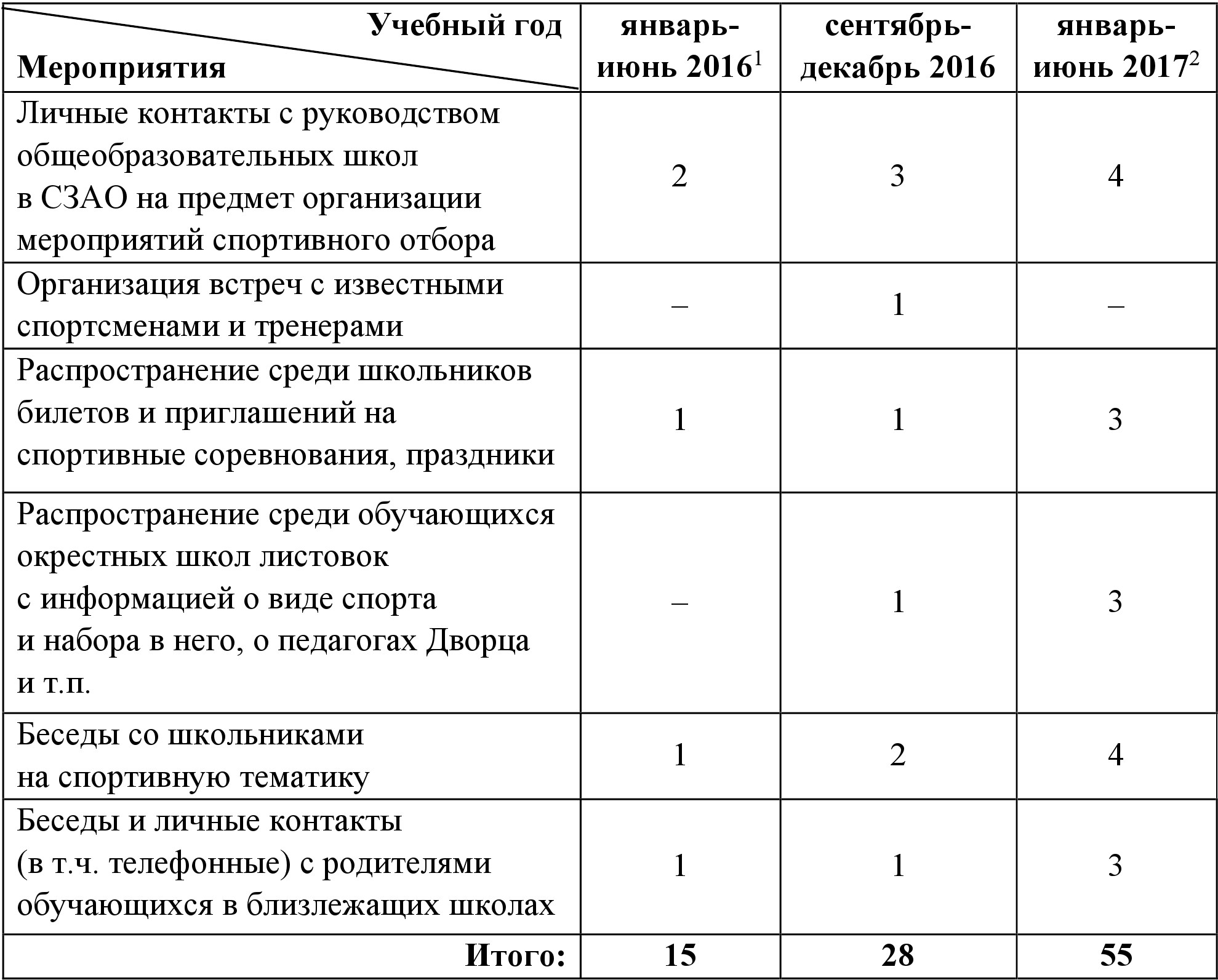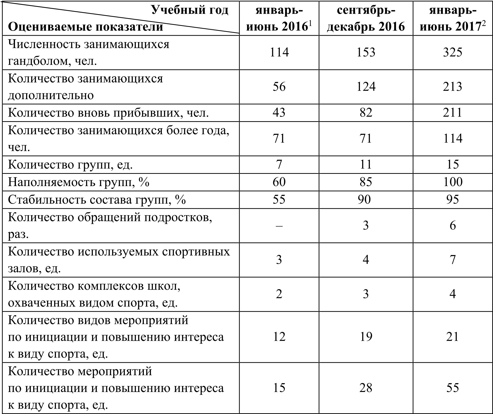Длительность эксперимента, проведённого в ГБОУДО ДТДМ «Неоткрытые острова» г. Москвы (далее Дворец) в отделении «Гандбол», составила 1,5 учебных года (это были периоды с января по июнь 2016 года и весь 2016–2017 учебный год).