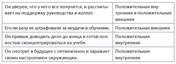 2.4.1. Позитивная и негативнаяМотивация бывает позитивной (положительной) и негативной (отрицательной). Здесь все зависит от ожидаемой реакции: если в результате выполнения определенного действия мы рассчитываем получить похвалу, речь идет о позитивной мотивации, если боимся наказания – об отрицательной. По своему опыту скажу, что на негативной мотивации далеко не уедешь – она дает кратковременный эффект и затрудняет всю дальнейшую работу.