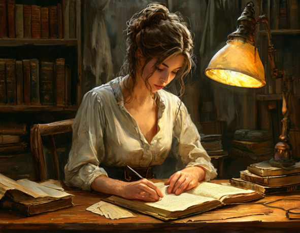 Собравшись с мыслями, Аня села за дубовый стол. В тусклом свете настольной лампы старые страницы собирались вокруг неё, словно шепча над тайной, которую имели в себе.