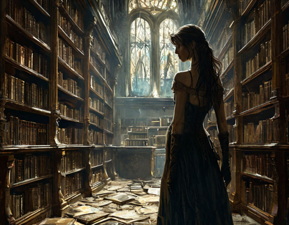 Темный силуэт ставил странные акценты на четко вырезанном лице Лары, когда она вошла в старую библиотеку, полную загадок и пыли, собравшейся на книжных полках.