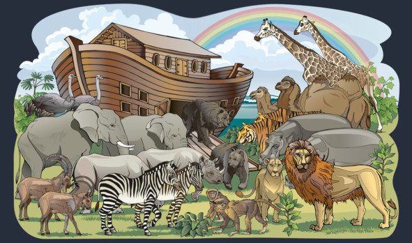 Yomg’ir ko’p kunlar va tunlar yog`di. Barcha tog’lar, hatto eng baland cho’qqilar ham suv ostida qoldi. Lekin kunlarning birida yomg’ir to’xtadi. Suv asta-sekin pasayib, katta kema tog ' yonbag’riga chiqib qolgi. Yer quriganida, barcha odamlar va hayvonlar yerga tushdilar.