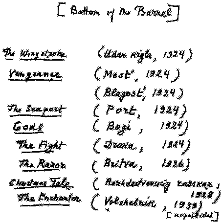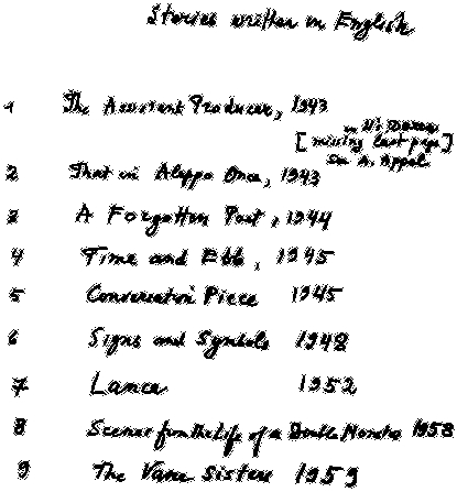 Составленные Владимиром Набоковым списки рассказов для новых изданий: «Со дна жестянки» – отобранные им русские рассказы для перевода на английский язык и «Рассказы, написанные по‐английски» (ок. 1976 г.)