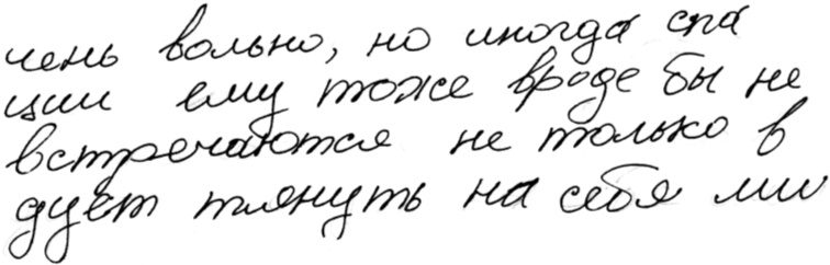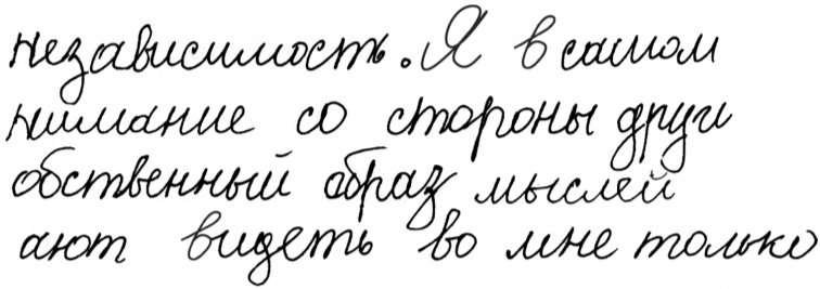 Этот образец (рис. 4) станет хорошим примером того, что почерк писавшего не выдает его возраст. Почерк выглядит так, словно его обладателем является 16-летний подросток, в действительности же писавшему 35 лет.