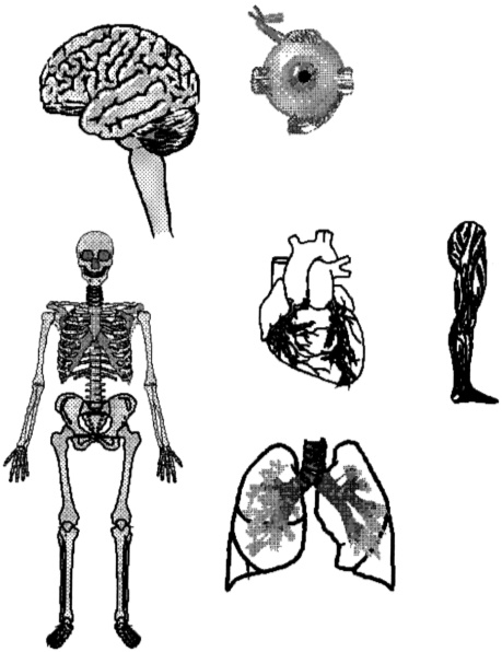 Чтобы проиллюстрировать нашу мысль, рассмотрим рисунок, на котором изображены фрагменты человеческого тела (рис. 11). Для обеспечения жизнедеятельности человека требуется наличие кровеносной системы, нервной системы, дыхательной системы, скелета и ряда других систем, работающих вместе как единое целое. Если какие-то части системы отсутствуют либо функционируют неправильно, это отразится на деятельности других частей.