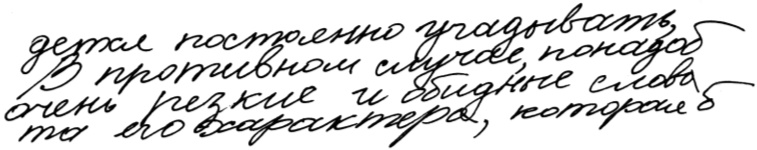 Тесно расположенные буквы (рис. 27) выдают человека импульсивного, склонного к поспешным суждениям и чрезмерно впечатлительного. Он нередко не отдает себе отчета в собственных чувствах и чувствах других людей. Его отчаянное желание «вписаться» в коллектив нередко толкает его к опрометчивым поступкам, которые он совершает, как ему кажется, ради достижения своей цели. Такие люди не только легко поддаются давлению со стороны окружающих, но также уступают силе собственных эмоций.
