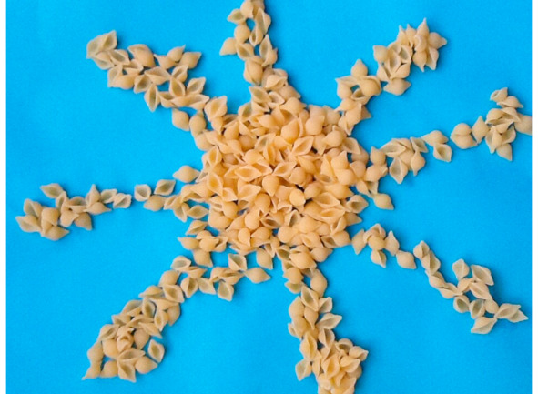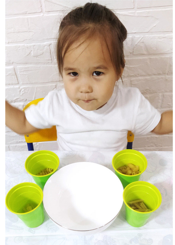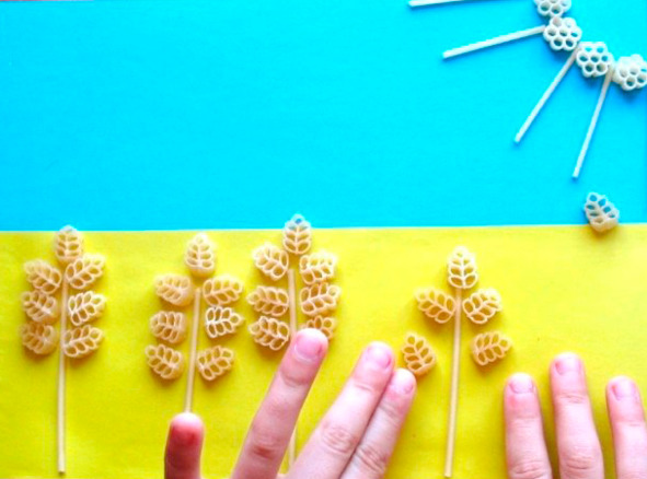 Материалы для игры: лист чистой бумаги (цветная бумага) либо поднос, несколько видов макарон (фото 4).