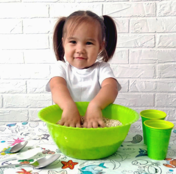 5. Игры с крупами и водой предназначены для детей от 9 месяцев под присмотром родителей. Иначе ребенок может подавиться или засунуть что-нибудь в нос или ухо.