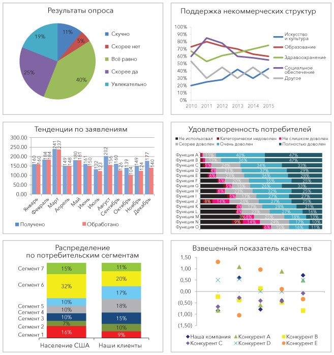 Наглядные примеры из разных сферВ этой книге я разбираю практические примеры, которые использовались для презентации реально обсуждавшихся идей. Уроки не относятся к конкретной области или должности. Мы изучим фундаментальные концепции и самые результативные методы визуализации данных. Я сотрудничала с компаниями из самых разных сфер, и примеры в этой книге будут разнообразными. Мы разберем случаи из таких областей, как технологии, образование, потребительские продукты, некоммерческий сектор и т. п.