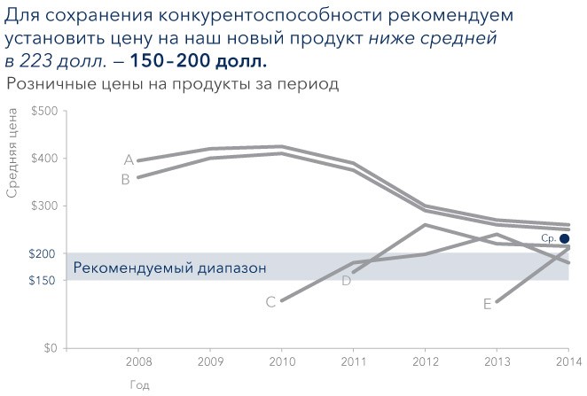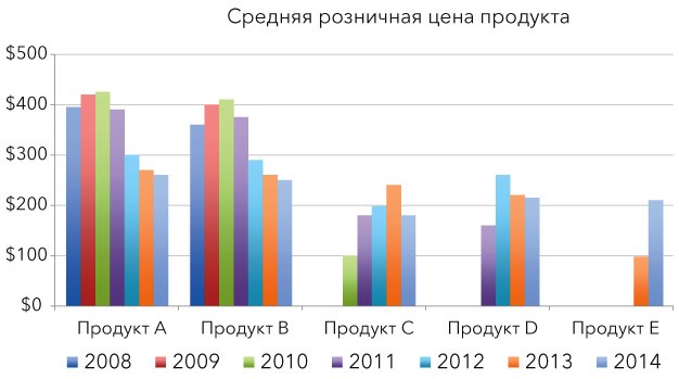 Я не буду обсуждать конкретные инструменты, но примеры в этой книге выполнены с использованием Microsoft Excel. Если вам интересно, как похожие диаграммы можно создать в этом приложении, посетите мой сайт storytellingwithdata.com, где можно скачать дополнительные файлы.