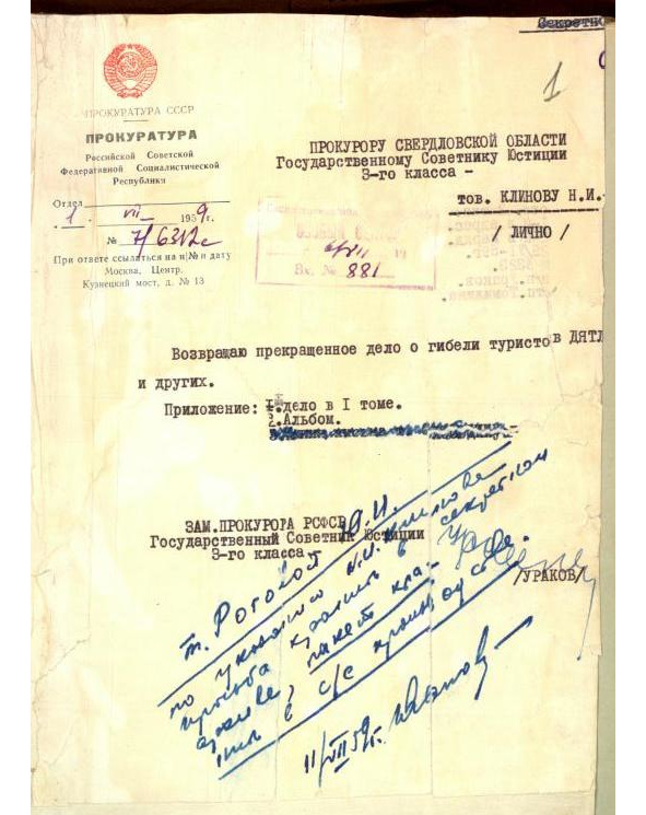 В постановлении о прекращении уголовного дела «О гибели туристов в районе горы Отортен» прокурор-криминалист Иванов утверждает, что «причиной гибели туристов явилась стихийная сила, преодолеть которую туристы были не в состоянии» (УД т.1, л.д. 387).