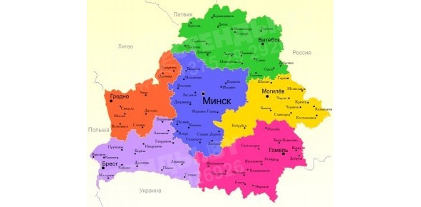 В республике шесть больших городов Брест, Витебск, Гомель, Гродно, Минск, Могилев, которые делят страну на области.