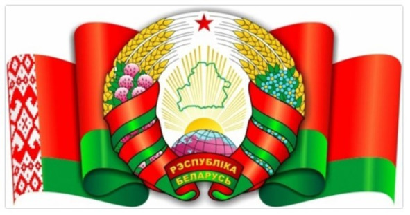 Государственный герб Республики Беларусь представляет собой размещенный в серебряном поле золотой контур Государственной границы Республики Беларусь, наложенный на золотые лучи восходящего над земным шаром солнца. Вверху поля находится пятиконечная красная звезда. Герб обрамлен венком из золотых колосьев, переплетенных справа цветками клевера, слева – цветками льна. Венок трижды перевит с каждой стороны красно-зеленой лентой, в средней части которой в основании Государственного герба Республики Беларусь в две строки начертаны золотом слова «Рэспубліка Беларусь».